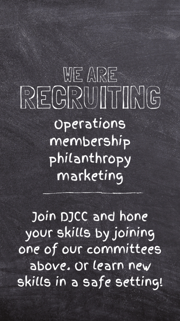 Elections are upon us and DJCC is looking for nominations for leadership positions and board members. If you’re a DJCC member, you may nominate another member between now and November 30. Elections will take place during December. Keep an eye out for email updates and information on candidates.